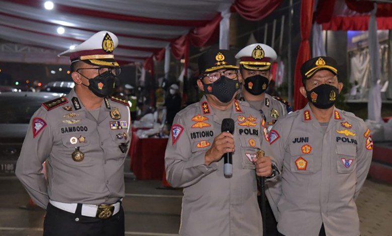Liputan6.com, Jakarta Kepala Korps Lalu Lintas (Kakorlantas) Polri Irjen Pol Istiono melakukan pengecekan di check point pos PPKM Mikro di kelurahan Cilangkap, Cipayung, Jakarta Timur. Check point ini merupakan salah satu lokasi zona merah Covid-19.