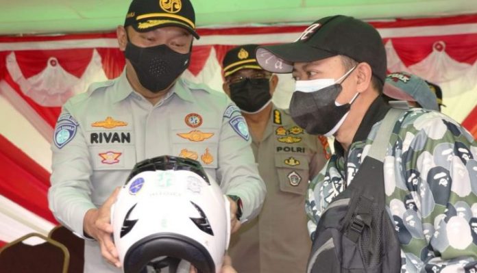 MANADO – Direktur Utama PT Jasa Raharja Rivan A. Purwantono bersama Kakorlantas Mabes Polri Irjen Pol Drs. Istiono, MH memantau pos penyekatan PPKM Level 4 di Wilayah Kabupaten Minahasa, Rabu (25/8/2021).