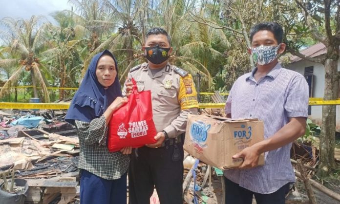 Dalam cegah penyebaran covid-19, Saat sambang di desa binaannya, Bhabinkamtibmas Desa Semparuk menyerahkan bantuan sosial berupa paket sembako Polres Sambas Peduli kepada warga masyarakat yang kurang mampu atau masyarakat terdampak oleh pandemi covid-19. Bansos yang diberikan diharapkan dapat membantu meringankan beban masyarakat. Senin (13/9/2021).