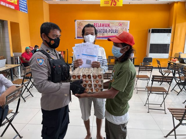 Hadir dalam kegiatan Panit Min Binmas Polsek Abepura Ipda Taufiq Rahim, relawan vaksinator Dr. Filumena B Putri dan Tenaga Kesehatan (Nakes).