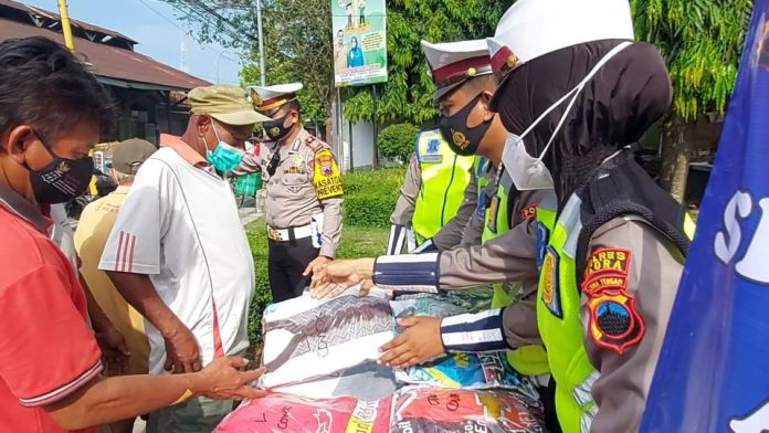 Sabtu, (25/09/2021) anggota gabungan Satgas Operasi Patuh Polres Blora membuka stand masker gratis serta bantuan sosial berupa pakaian barokah layak pakai.
