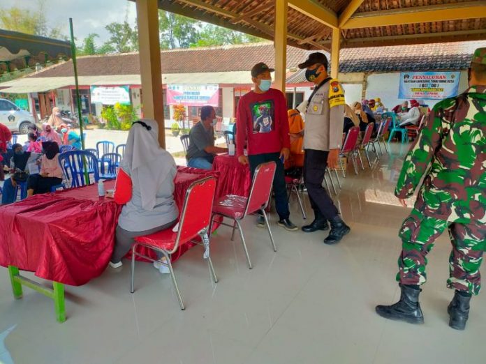 Blitar  – Dalam rangka mensukseskan program pemerintah vaksinasi secara nasional, Polsek Lobar Polres Blitar bersama 4 Pilar melakukan pengamanan dan monitoring pelaksanaan vaksinasi Covid-19, dengan sasaran masyarakat di Desa Jimbe Kec. Kademangan Sabtu, ( 25/09 ).