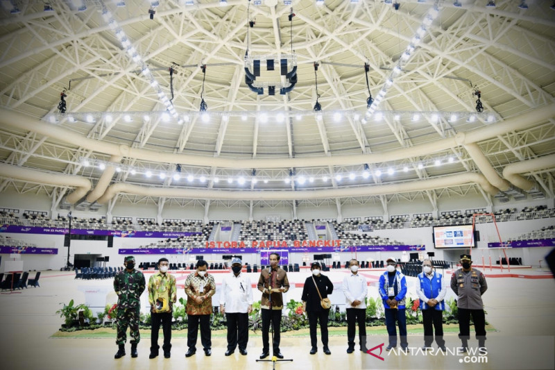 Jakarta – Panglima TNI Marsekal TNI Hadi Tjahjanto meminta seluruh prajurit yang membantu pengamanan Pekan Olahraga Nasional (PON) XX Papua agar bekerja secara maksimal dan penuh rasa tanggung jawab.Panglima TNI menyampaikan pesan itu kepada prajurit dan anggota Polri di sela tugas mendampingi Presiden RI Joko Widodo meresmikan tujuh arena pertandingan PON XX di Papua, Sabtu.