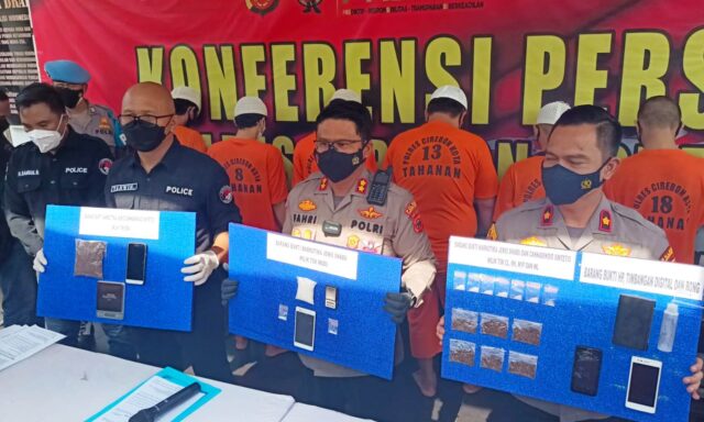 Kota Cirebon – Jajaran satuan narkoba Polres Cirebon kota yang dipimpin oleh Kasat Narkoba AKP Tanwin Nopiansyah, SE dalam sepekan berhasil mengungkap tindak pidana penyalahgunaan narkotika jenis sabu dan tembakau sintetis dengan menangkap 6 orang tersangka yang keseluruhannya di kategorikan sebagai pengedar. Hal ini terungkap dalam Konpres yang diselenggarakan Polres Cirebon Kota yang dipimpin langsung Kapolres Cirebon Kota AKBP Fahri Siregar, SH, MH, Selasa (16/11-2021)