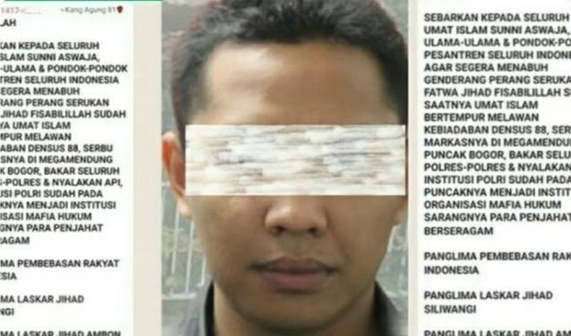 Penyebar seruan jihad untuk melawan densus 88 dan membakar seluruh polres di Indonesia ternyata seorang pemuda asal Bandung.