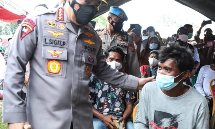 Konawe – Kapolri Jenderal Polisi Drs. Listyo Sigit Prabowo, M.Si., meninjau kegiatan vaksinasi massal yang digelar di seluruh Indonesia atau 34 Polda jajaran. Dalam kesempatan ini, Kapolri mengecek langsung di Lapangan Sorumba, Kabupaten Konawe Selatan, Sulawesi Tenggara, Rabu (15/12/2021).